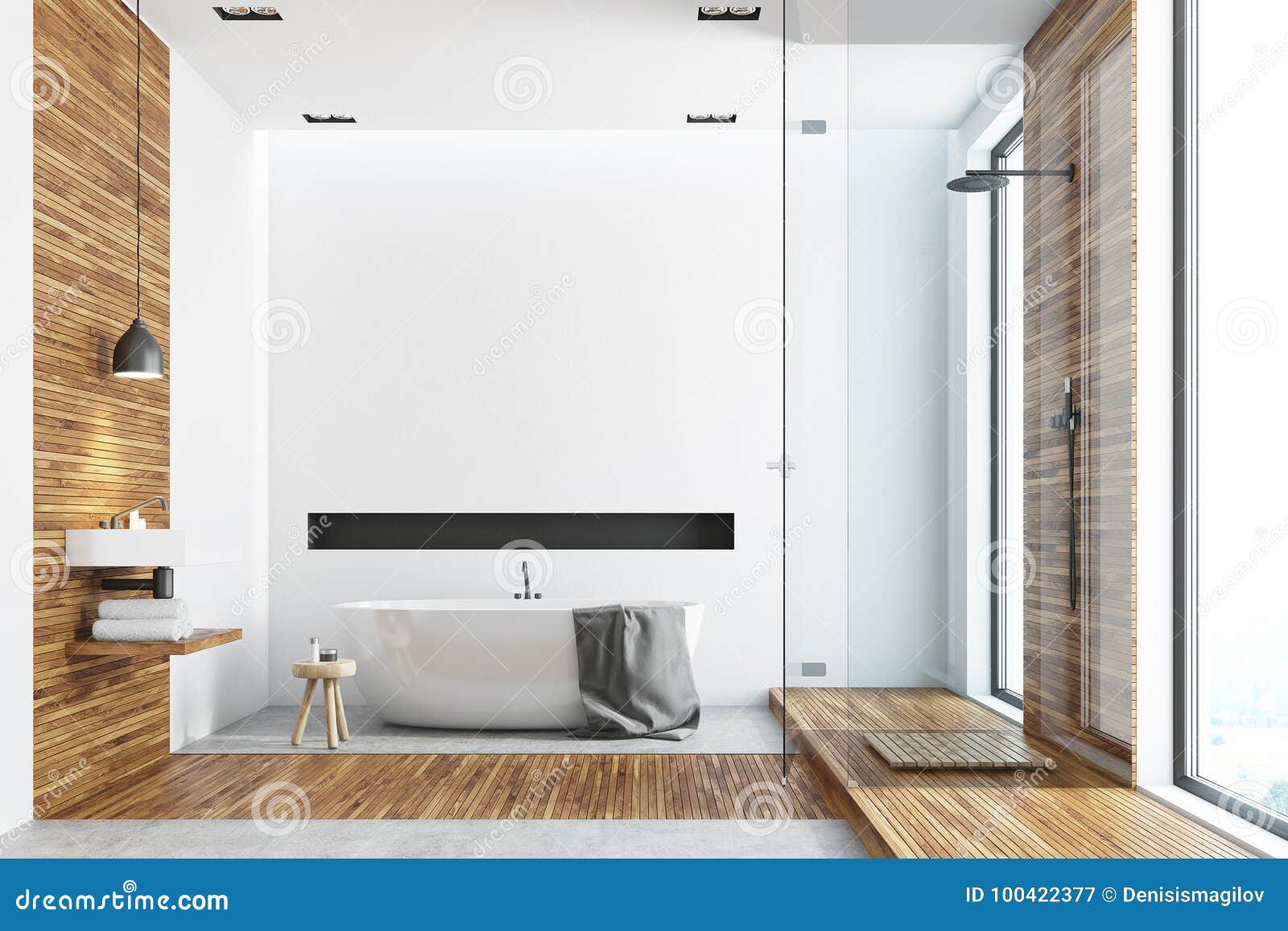 Banheiro De Madeira E Branco Cuba Redonda Ilustração Stock
