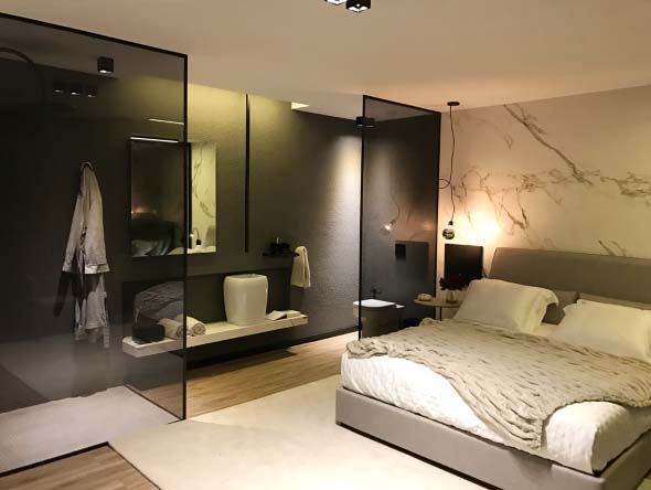 Banheiro Sem Paredes E Com Box De Vidro Visto Do Quarto